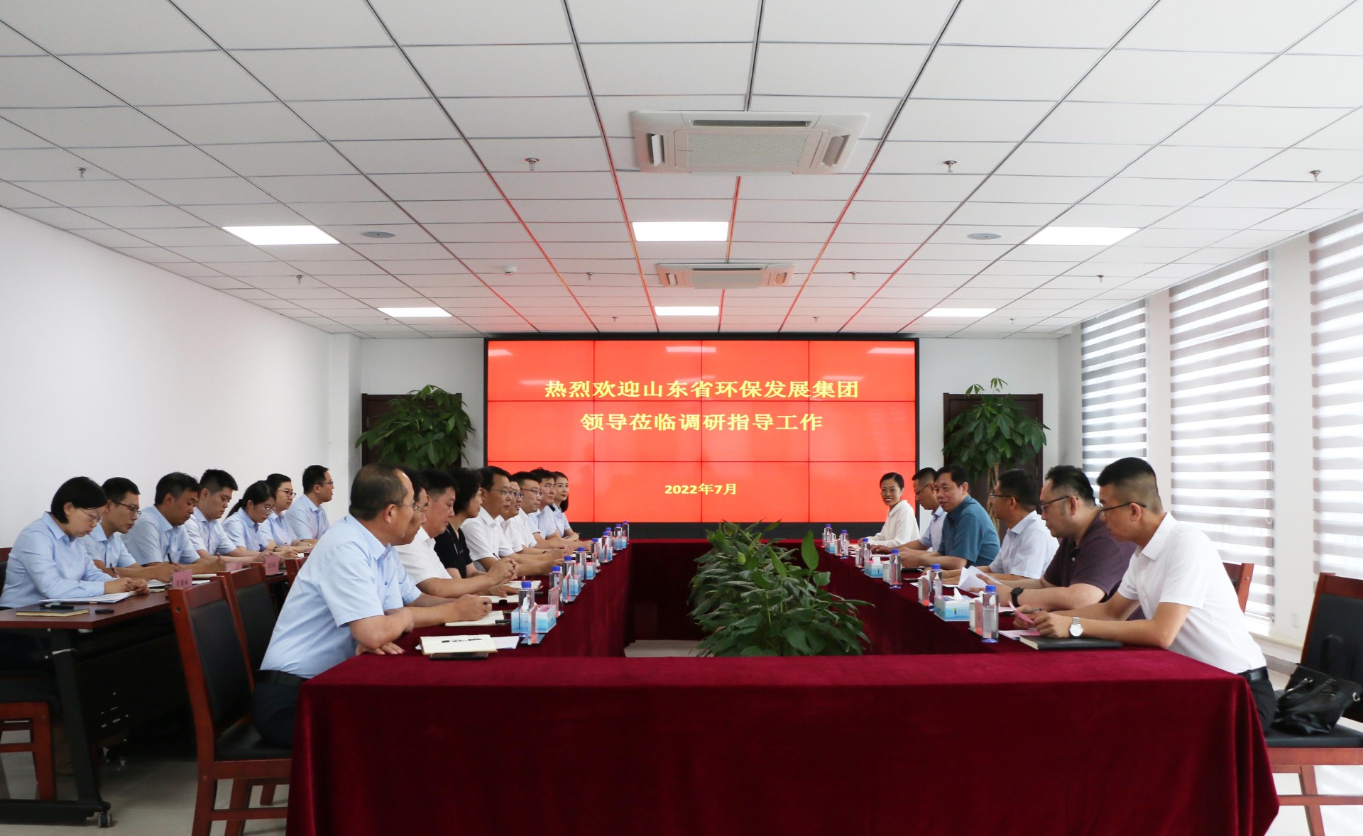 7月6日,山东省环保发展集团有限公司党委副书记、副总经理曾繁领,党委副书记王建新一行到水发生态产业集团有限公司(以下简称“水发生态”)调研指导工作。