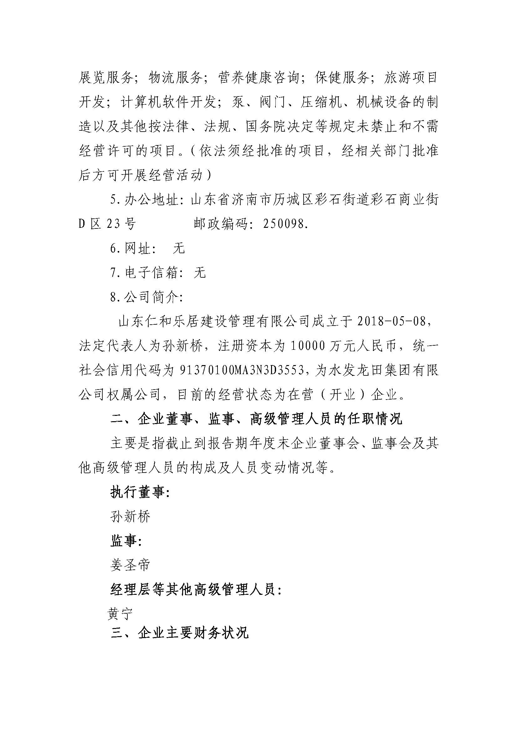 山东仁和乐居建设管理有限公司2023年度重大信息公告