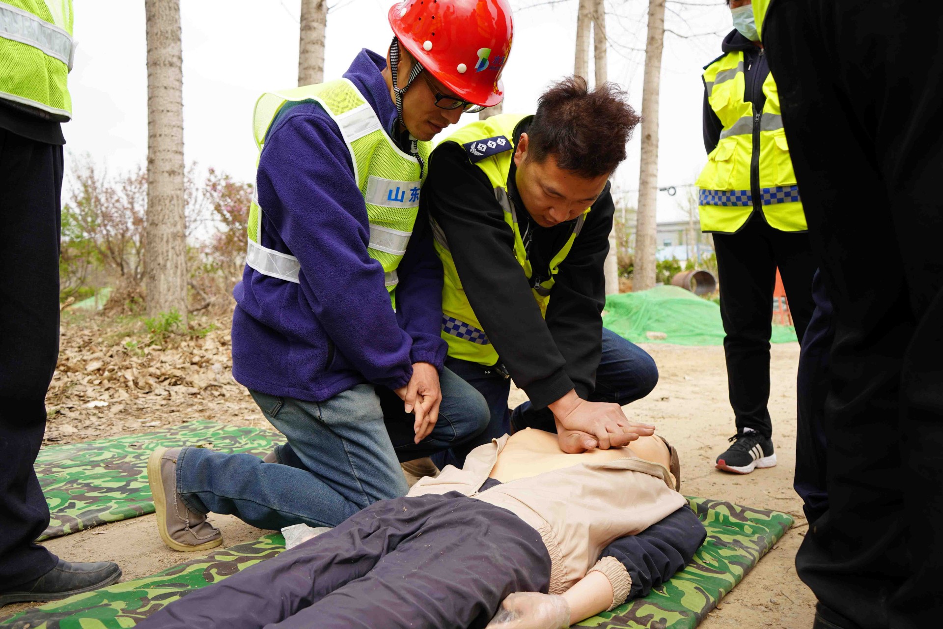 本次演练特邀请淄博城际救援队周村28支队参与指导,首先由城际救援队人员讲解触电现场的应急处置、心肺复苏、简易担架制作等救援方式的技巧和注意事项,随后按照事故类型进行实际操作演示和应急模拟处理,最后由专家组对本次应急演练进行点评总结。